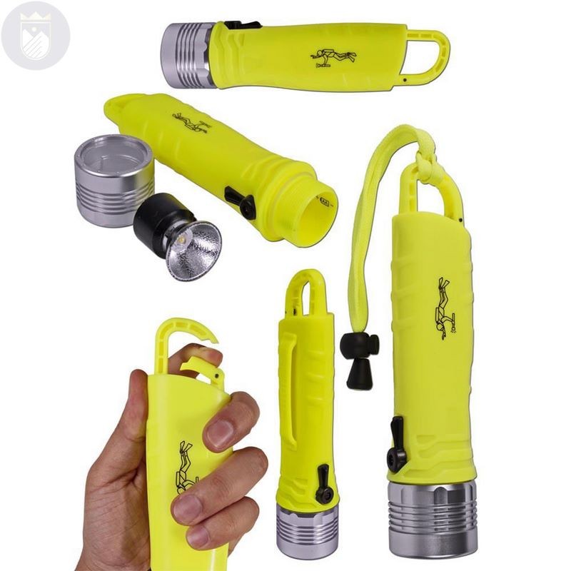 Linterna especial para utilizar en actividades que necesite iluminar dentro del agua, como pesca y buceo. Con Bombillo cree de 3 watios Tiene bombillo con tecnologia led tipo Cree de 3 watios. Potente luz 180 lumens Fuente de luz Bombillo: led tipo cree Intensidad luminosa: 180 lumens Fuente de energía: 4 baterías tipo AA Alcance debajo del agua: 25 metros Prendido y apagado: Switch rotativo magnetico Material: Plástico y cabeza de aluminio Utilidad: Buceo y pesca nocturna y otras actividades. Medidas:16 cms x 4 cms